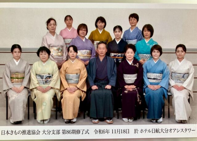 日本きもの推進協会大分支部師範科認定式ならびに本科86期生の修了パーティを開催しました。